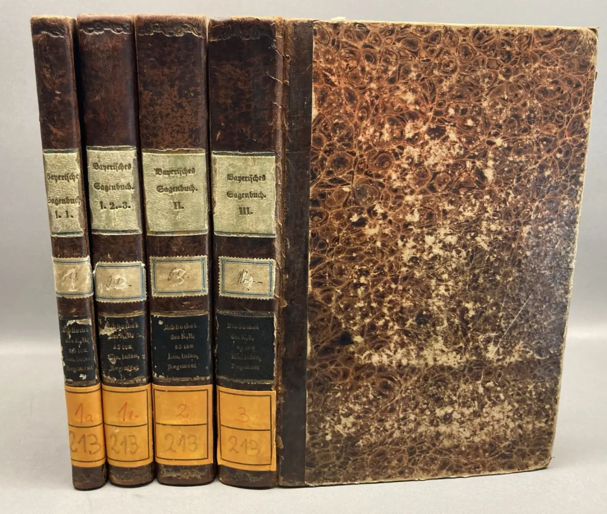 Einbände etwas stärker beschabt und bestoßen, in jedem Band ist sind Stemple vom Spiegel bis zum Titel. Papier bei allen gering gebräunt und vereinzelt fingerfleckig