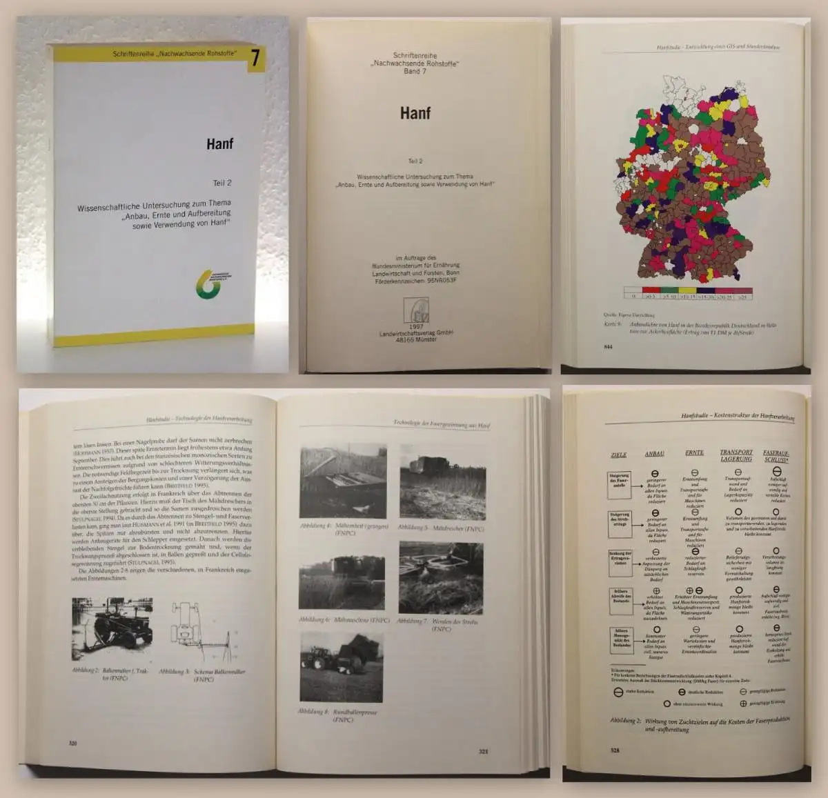 Hanf Teil 2 Wissenschaftliche Untersuchungen zum Thema "Anbau, Ernte und Aufbereitung sowie Verwendung von Hanf" Im Auftrag des Bundesministeriums für Ernährung, Landwirtschaft und Forsten - Mit einigen Illustrationen, Karten, Tabellen und Diagrammen. Sprache: deutsch Größe: 8° (ca. 21 x 14 cm) Kollation: 1025 S., 1 Bl.; Broschur (Softcover) Zustand: Einband kaum berieben oder bestoßen, vereinzelt leicht fleckig. Papierbedingt gering gebräunt. Insgesamt sehr gutes Exemplar.