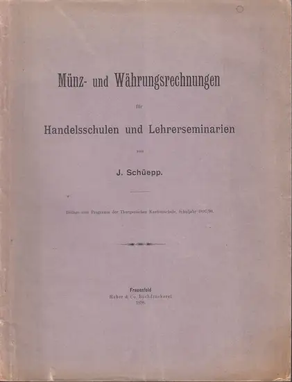 Schüepp, J: Münz- und Währungsrechnungen für Handelsschulen und Lehrerseminarien. Beilage zum Programm der Thurgauischen Kantonsschule, Schuljahr 1897 / 1898.