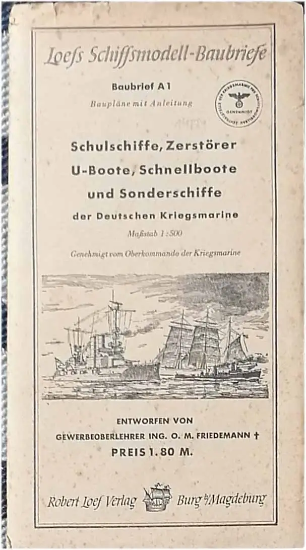 Titel: Schulschiffe, Zerstörer, U-Boote, Schnellboote und Sonderschiffe der Deutschen Kriegsmarine.. (Baupläne Kriegsschiffmodelle) - Maßstab 1:500 (vom OKW genehmigter Bauplan des Schlachtschiffstyps von 10.000 Tonnen)