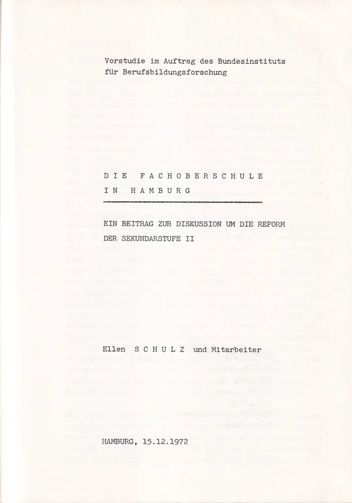 Schulz, Ellen u.a: Die Fachoberschule in Hamburg. Ein Beitrag zur Diskussion um die Reform der Sekundarstufe II. Vorstudie im Auftrag des Bundesinstituts für Berufsbildungsforschung. 2 Bde.