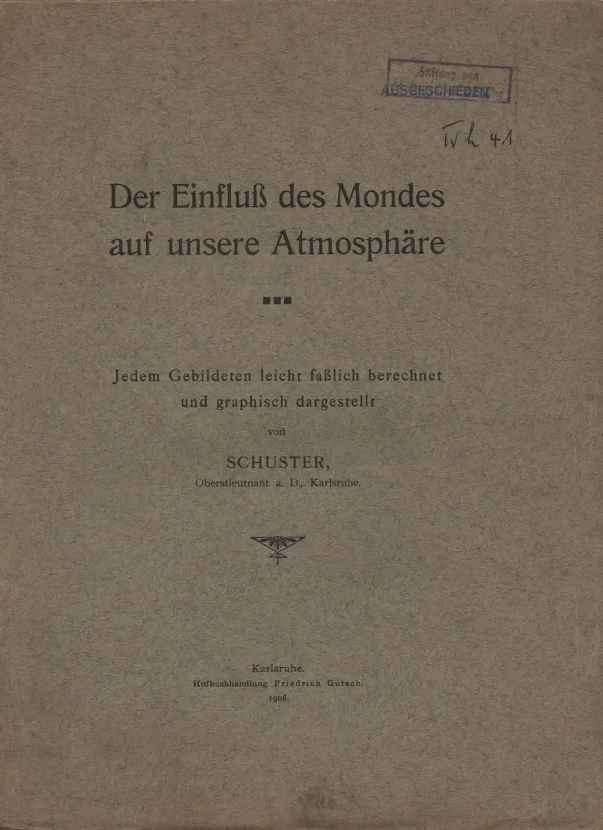 Schuster,: Der Einfluß des Mondes auf unsere Atmosphäre: jedem Gebildeten leicht faßlich berechnet und graphisch dargestellt.