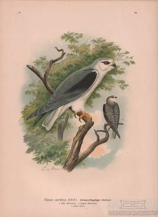 Bemerkungen: Zustand: Blatt leicht fleckig und altersbedingt minimal gebräunt, Lithographie gebräunt, Blatt mit leichter Randbräune, Ecken wenig bestoßen, insgesamt gute Erhaltung // Lithographie. Kunstgrafik. Druckgröße: 32,5 x 22,5 cm, Steindruck aus Naturgeschichte der Vögel Mittel