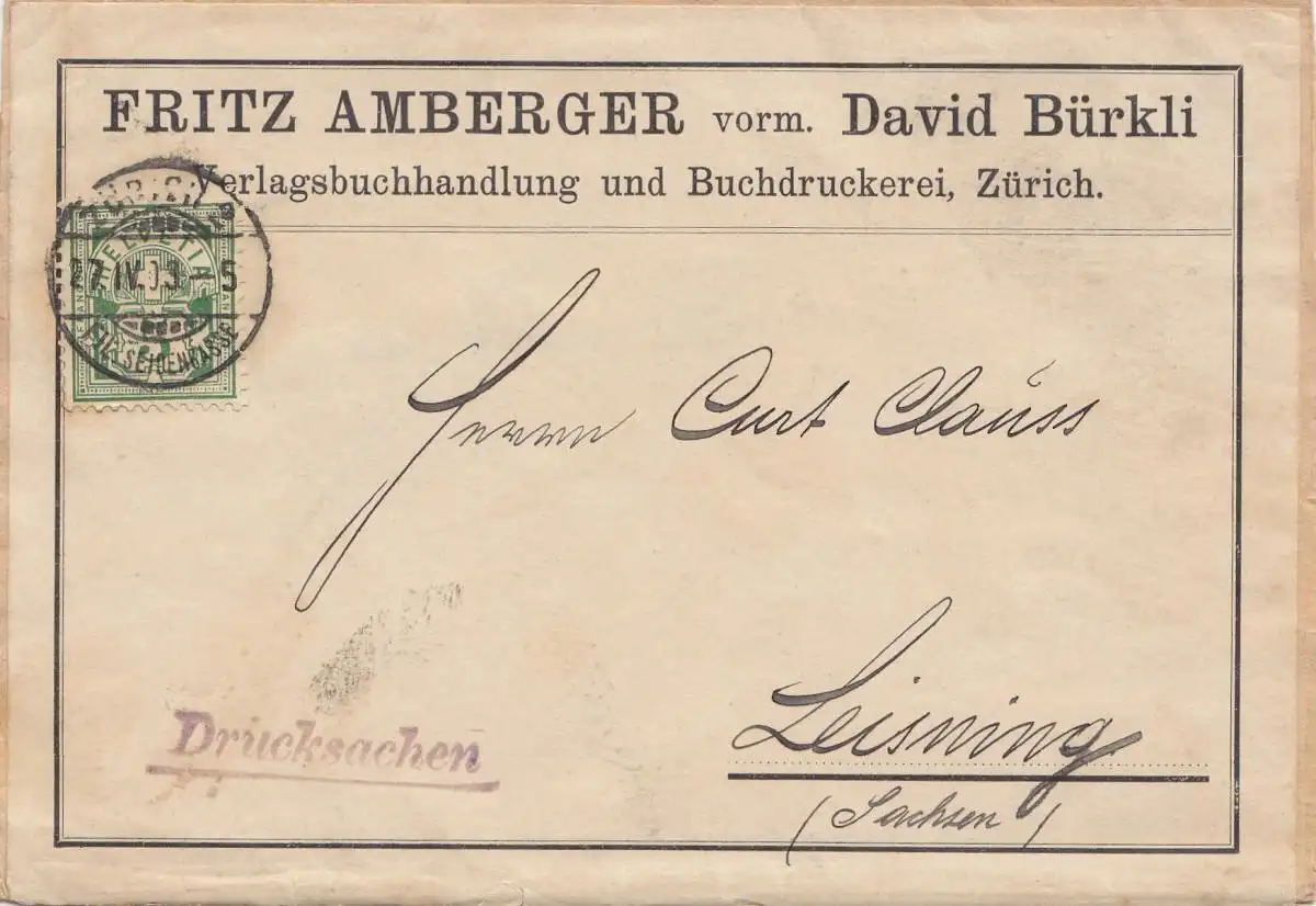 Suisse: 1909: Imprimerie de Zurich vers Leisning, partie de l'adresse