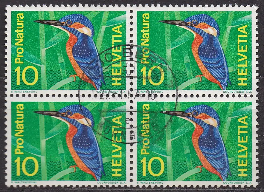 Schweiz, Mi-Nr. 833 gest., 4´er-Block, Eisvogel