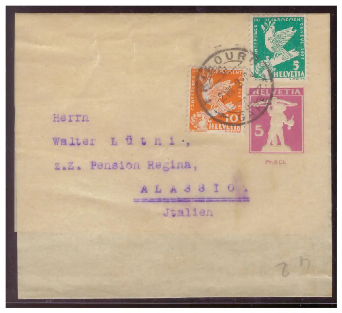 Schweiz (008041) Ganzsache Streifband mit Zusatzfrankatur gelaufen nach Alassio/ Italien