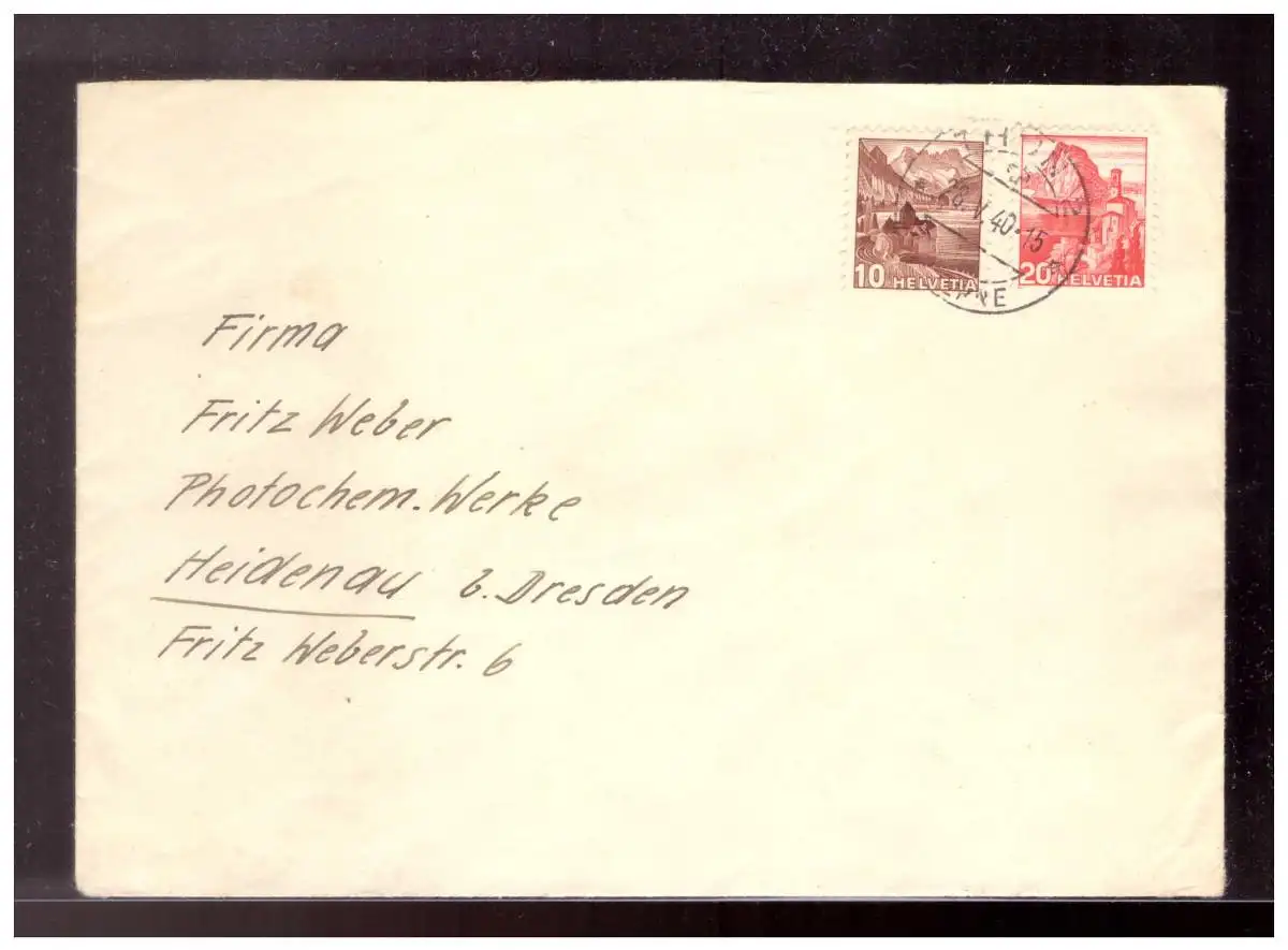 Schweiz (022516) Brief mit OKW Zensur gelaufen Thun nach Heidenau b. Dresden am 28.5.1940