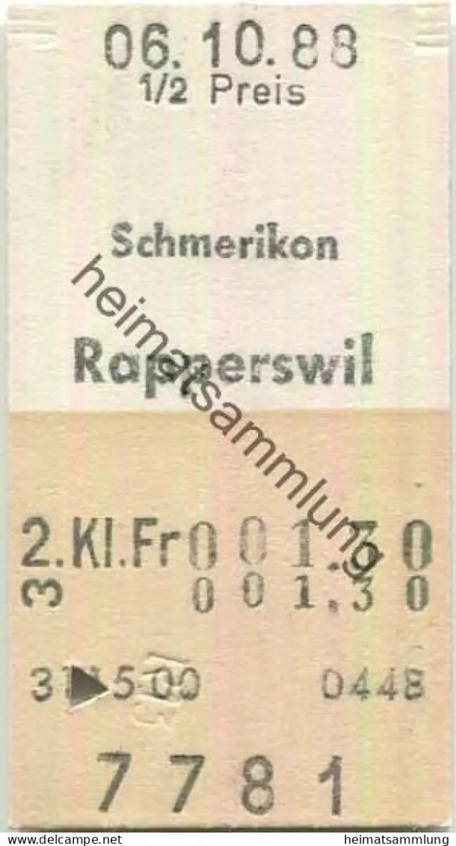Schweiz - Schmerikon Rapperswil einfach - Fahrkarte 1/2 Preis 1988 (G62903)