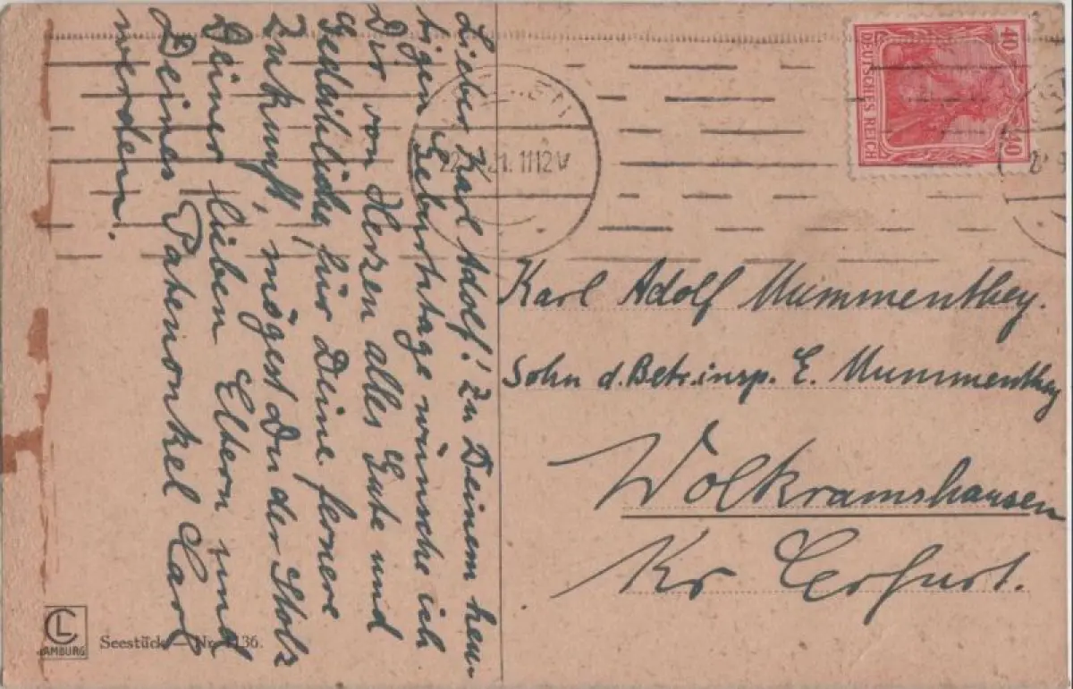 Bei dem angezeigten Bild handelt es sich um einen Original-Scan der angebotenen Ansichtskarte.
