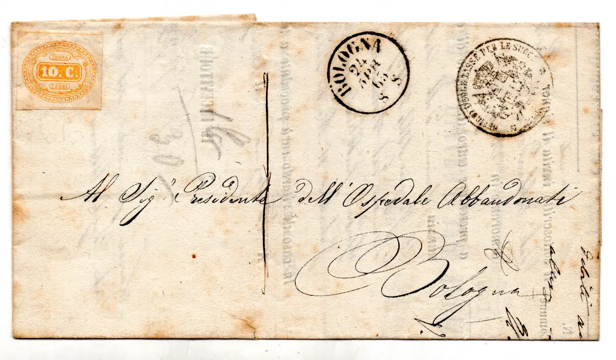 - Segnatasse Cent. 10 Nr. 1 sehr gut marginierte Orange (nicht annulliert) auf Brief nach Bologna am 24.4.65 - Ungewöhnliche Nr. 364/19