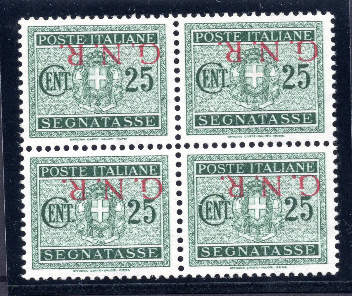 MNH - Vollgummi - - Steuermarken G.N.R. Cent. 25 Auflage Brescia Nr. 50/Das Viertel mit umgedrehtem Aufdruck - ein Exemplar auch mit kleiner Punktvariante nach dem G - Selten, nicht katalogisiert (evtl. 50/IAEC) - Ungefähres Angebot für Mängel über 3.000 Euro Cod.383/182