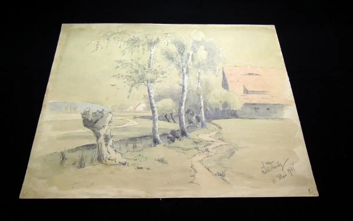 Papier leicht angeschmutzt, an allen Ecken mit Reiszwecklöchlein, minimal fleckig und gebräunt. Gutes Exemplar. Bilder sind ein Bestandteil der Zustandsbeschreibung. Zustand wurde bereits im Preis berücksichtigt.