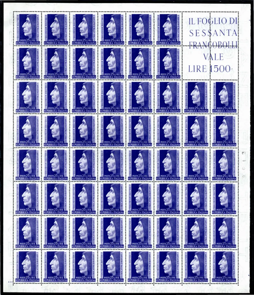 Seifenblatt der 3. Tisch Vollgummi - Savonarola Nr. 696 Blatt mit sechzig Exemplaren der 3. Tisch mit Eckblock - sehr gute Zentrierung - Kat. 315 Cod. 393/13