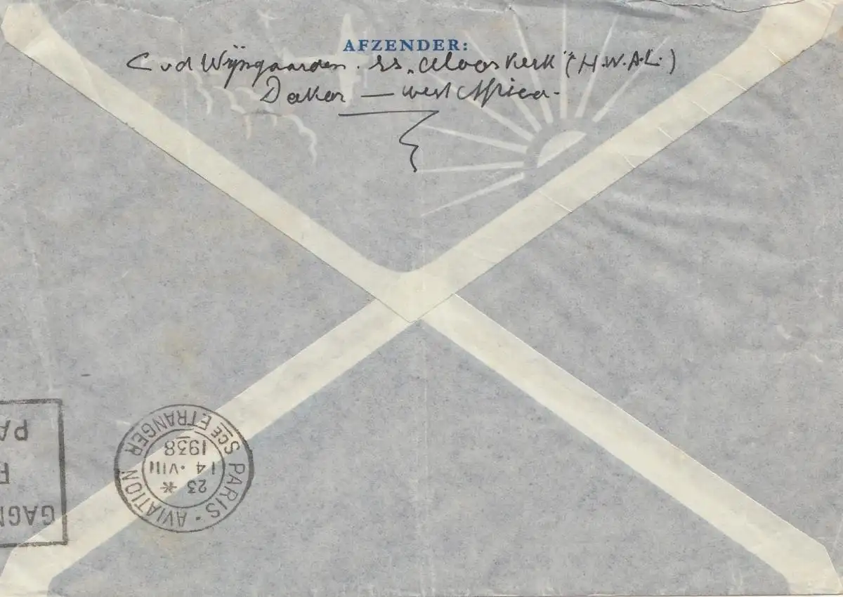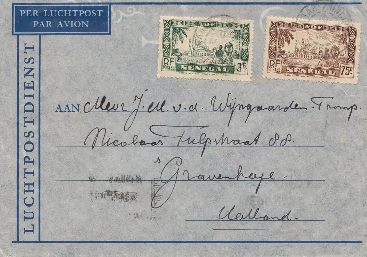 Sénégal: air mail 1938 Dakar to Gravenhage/Holland