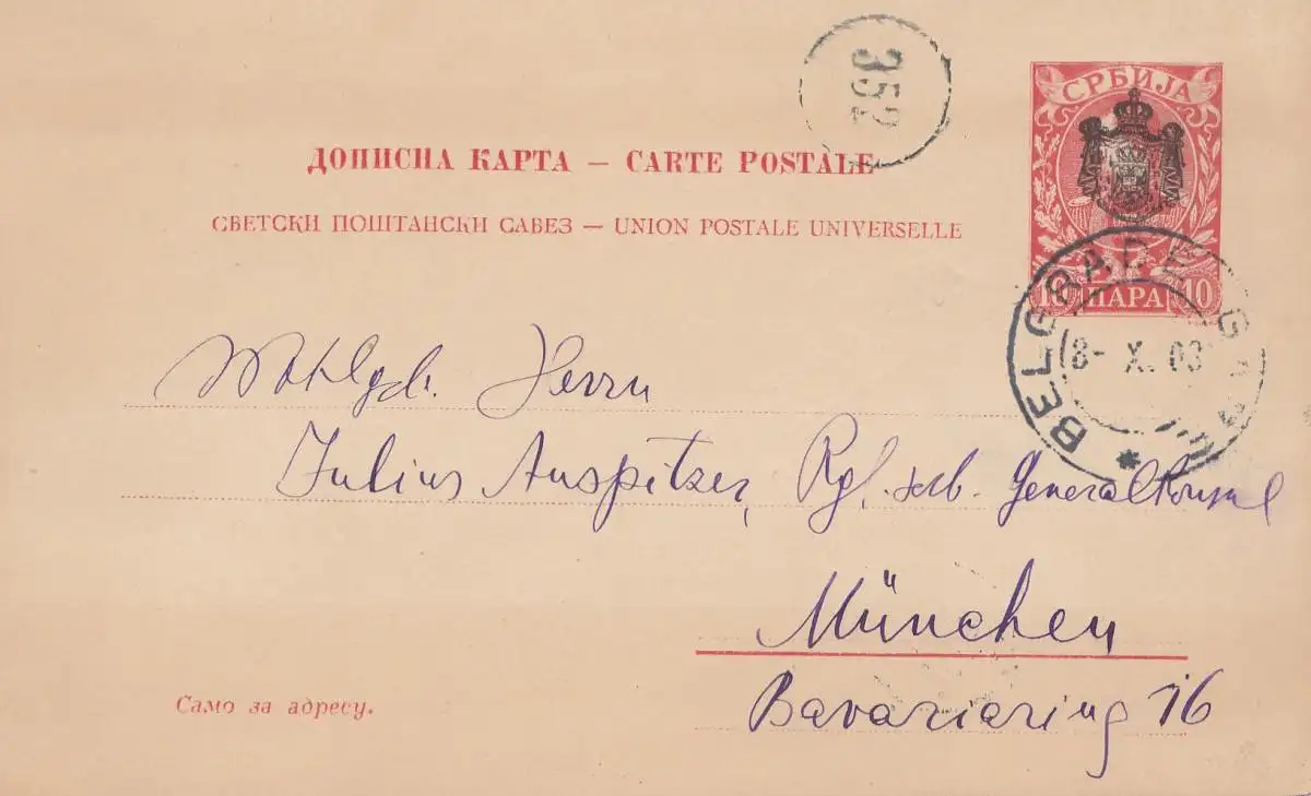 Serbien: 1903: Ganzsache nach München