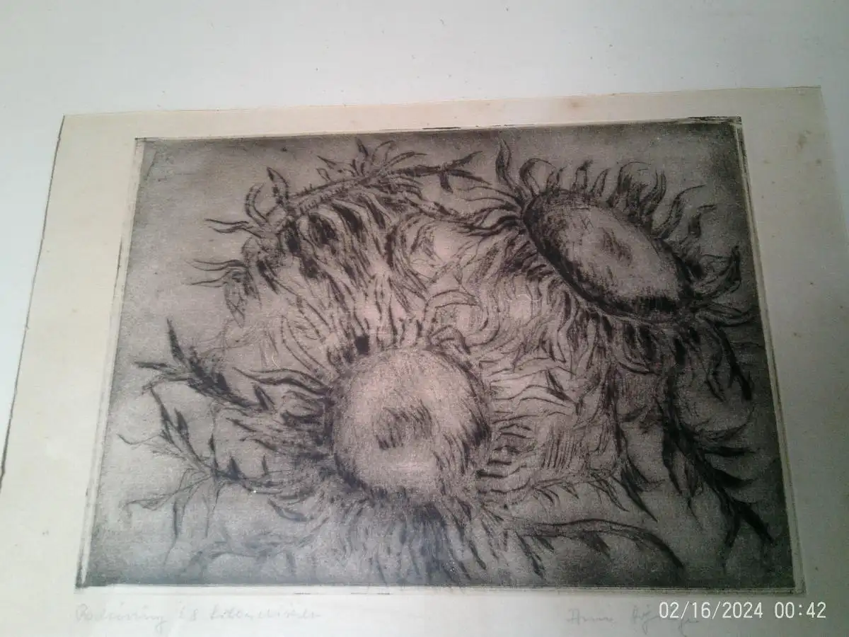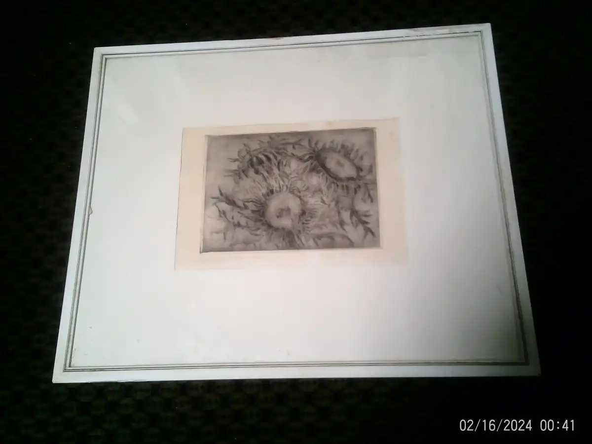 " Silberdisteln" Anne Höfinger Radierung signiert originale Rahmung : 47 x 40 cm