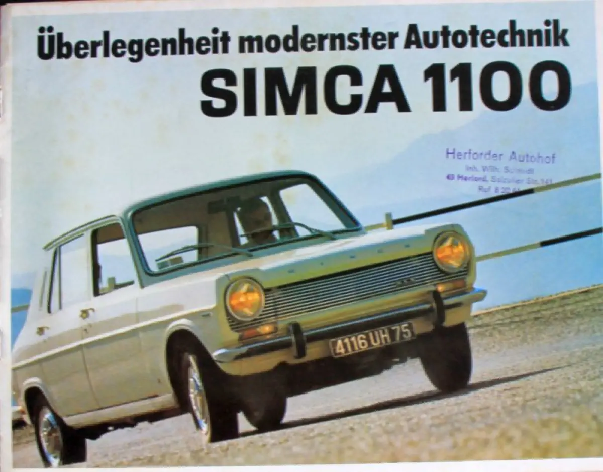 Simca 1100 Modellprogramm 1967 "Überlegenheit modernster Technik" Automobilprospekt (6600)