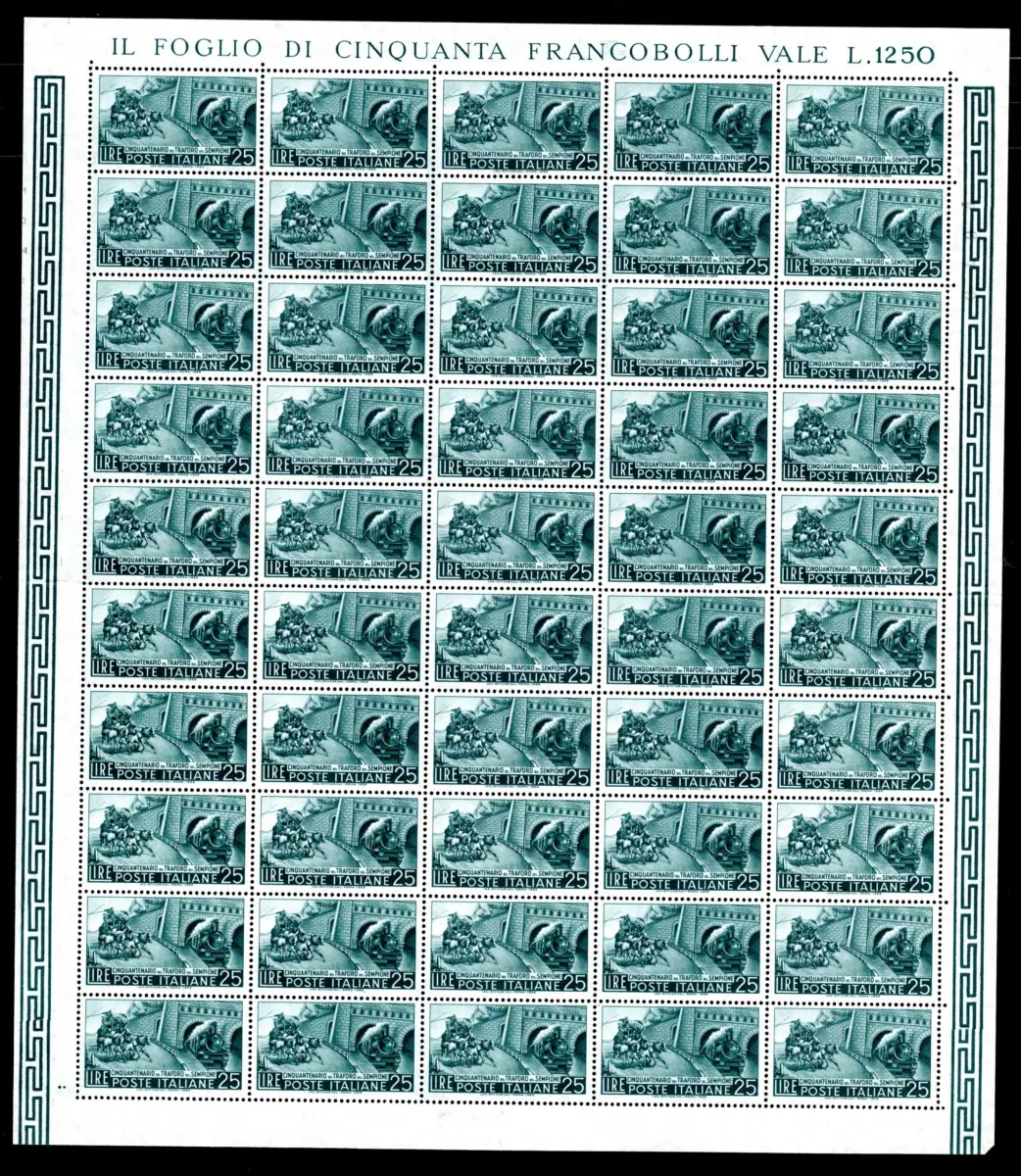 Simplontunnel aus Vollgummifolie - Simplontunnel Nr. 797 Blatt à fünfzig Exemplare - sehr gute Zentrierung - Kat. euro 200 Cod. 428/13