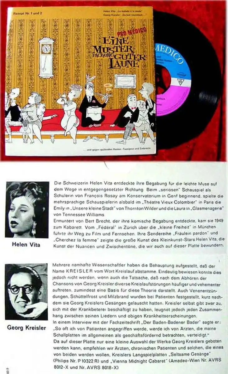 seltene Originalsingle, Pro Medico Records, dt. Pressung, mit Helen Vita (La Malade á la mode") & Georg Kreisler ("Du bist neurotisch")