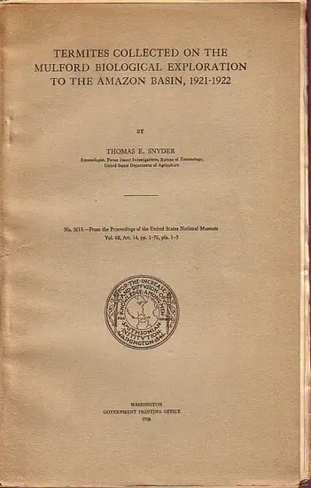 Snyder, Thomas E: Termites collected on the Mulford Biological Exploration to the Amazon Basin, 1921-1922. (= No. 2615 - From the Proceedings of the United States National Museum, Vol. 68, Art. 14).