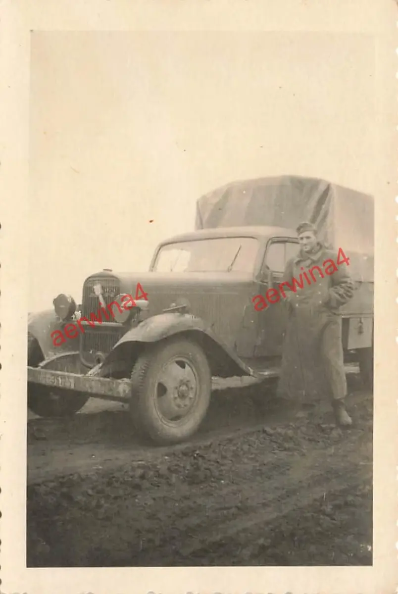 Soldat mit LKW Opel Blitz Rollbahn Smolenks Russland Ostfront
