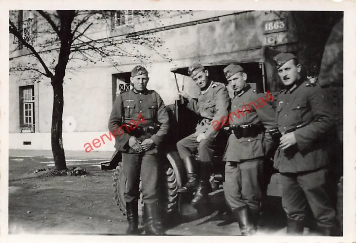Soldaten mit USA Beute LKW Chevrolet C-8 Kaserne Proteau Cherbourg Frankreich