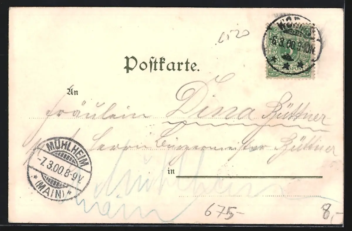 alte Ansichtskarte, gelaufen 1900, guter Zustand