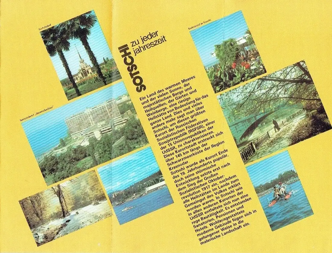 sehr guter Zustand, geringe Gebrauchs- und Alterungsspuren, Werbe-Prospekt mit Beschreibung und Informationen zur Stadt am Schwarzen Meer, Papier, ca. 9 x 21,5 (aufgeklappt ca. 56 x 21,5), 12 Seiten mit 14 Bildern