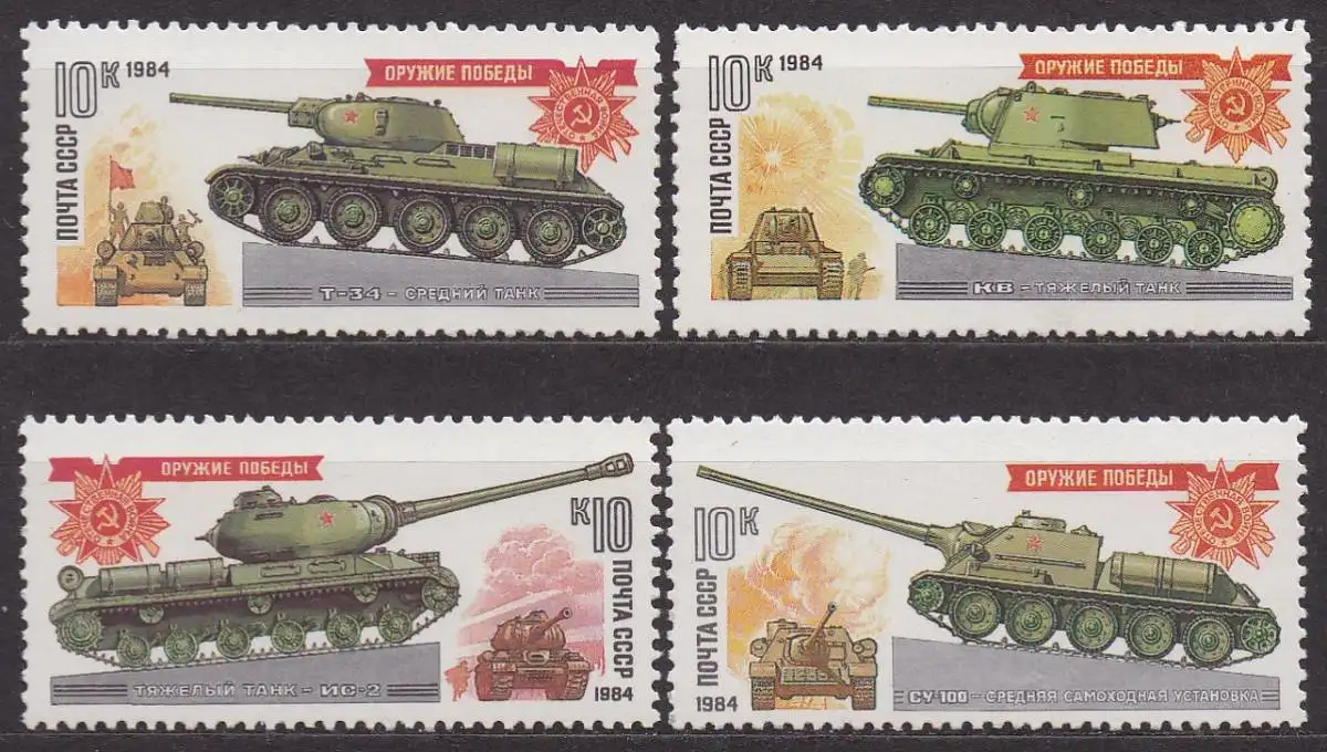 Sowjetunion, Mi-Nr. 5347, 5348, 5349 + 5350 **, Panzer