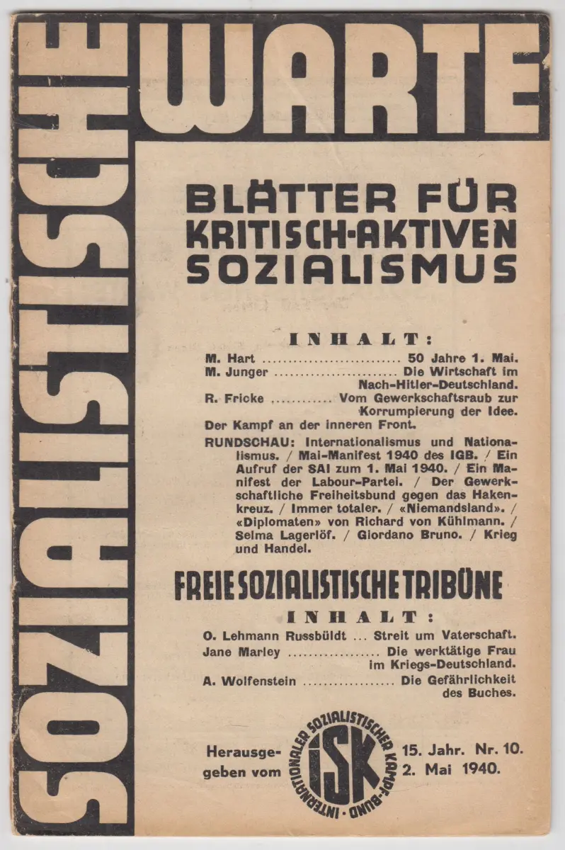 ISK - Internationalen Sozialistischen Kampfbund, 1940. S. 274-301 23,5 x 15,5 cm, Heft mit Drahtklammerheftung