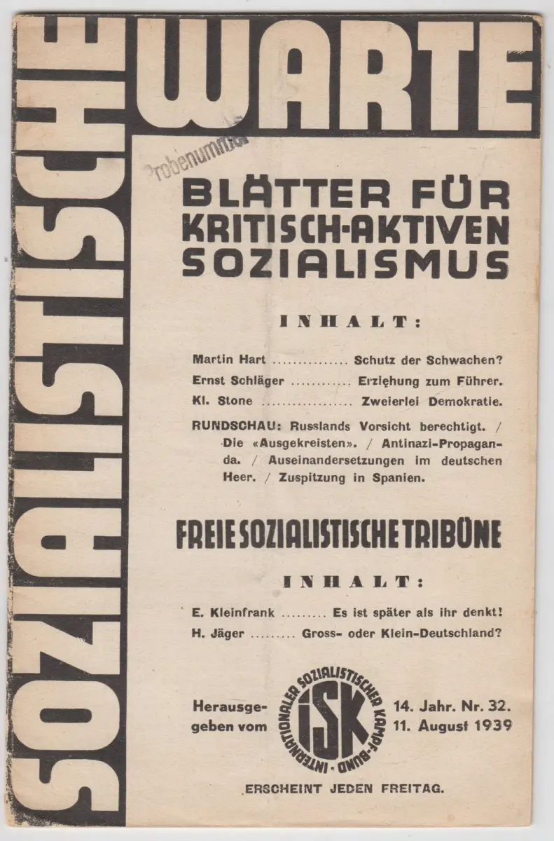 ISK - Internationalen Sozialistischen Kampfbund, 1939. S. 758-780 23,5 x 15,5 cm, Heft mit Drahtklammerheftung