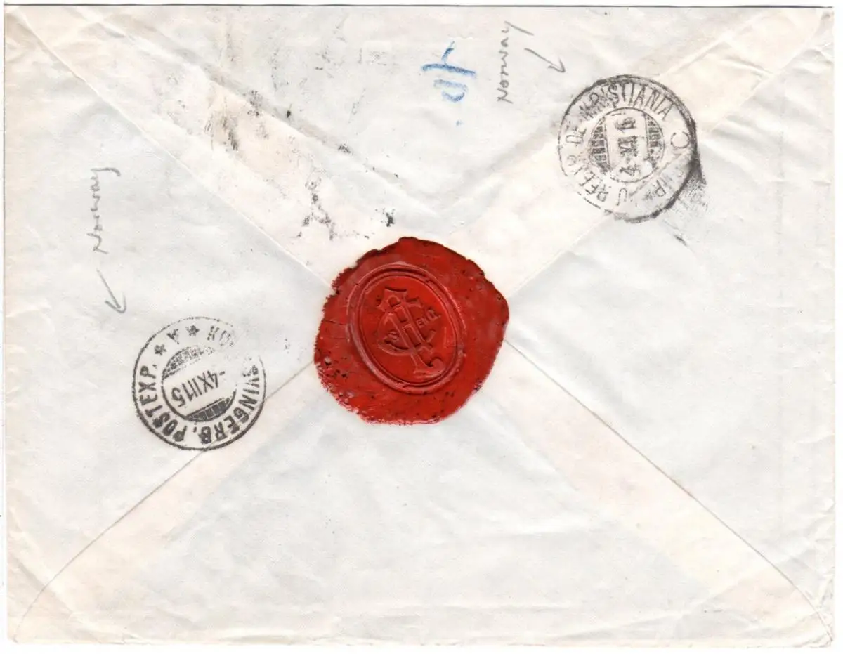 Reko Brief v. Madrid via Norwegen Bahnpost n. Malmö.