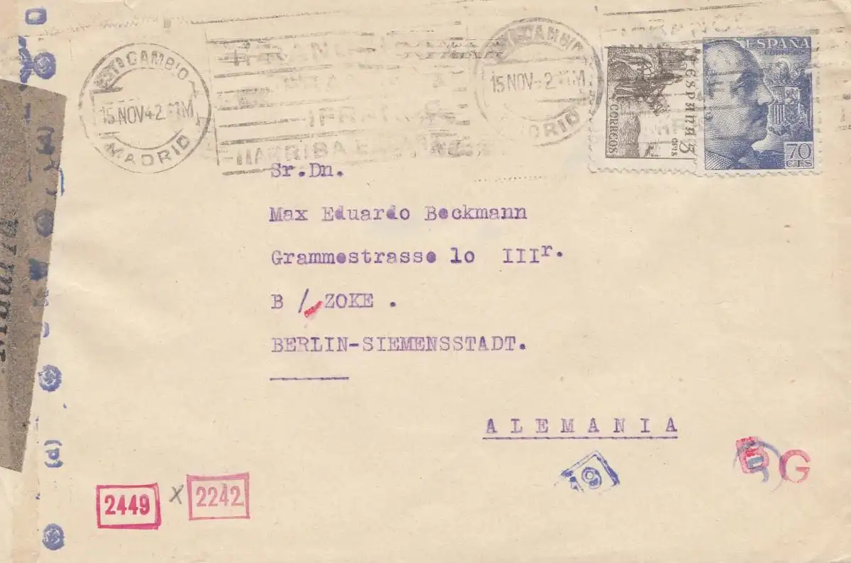 Espagne: 1942: Lettre de Madrid à Berlin, censure