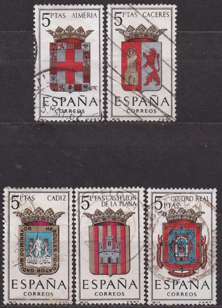 Spanien, Mi-Nr. 1317, 1370, 1371, 1373 + 1376 gest., Wappen der Provinzen