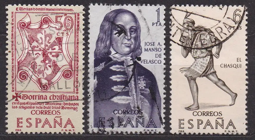 Spanien, Mi-Nr. 1646, 1647 + 1652 gest., Entdecker- u. Eroberungsgeschichte Amerikas