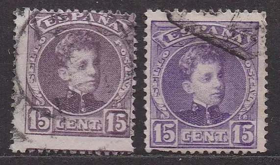 Spanien, Mi-Nr. 218 a I + 218 b gest., König Alfons XIII.