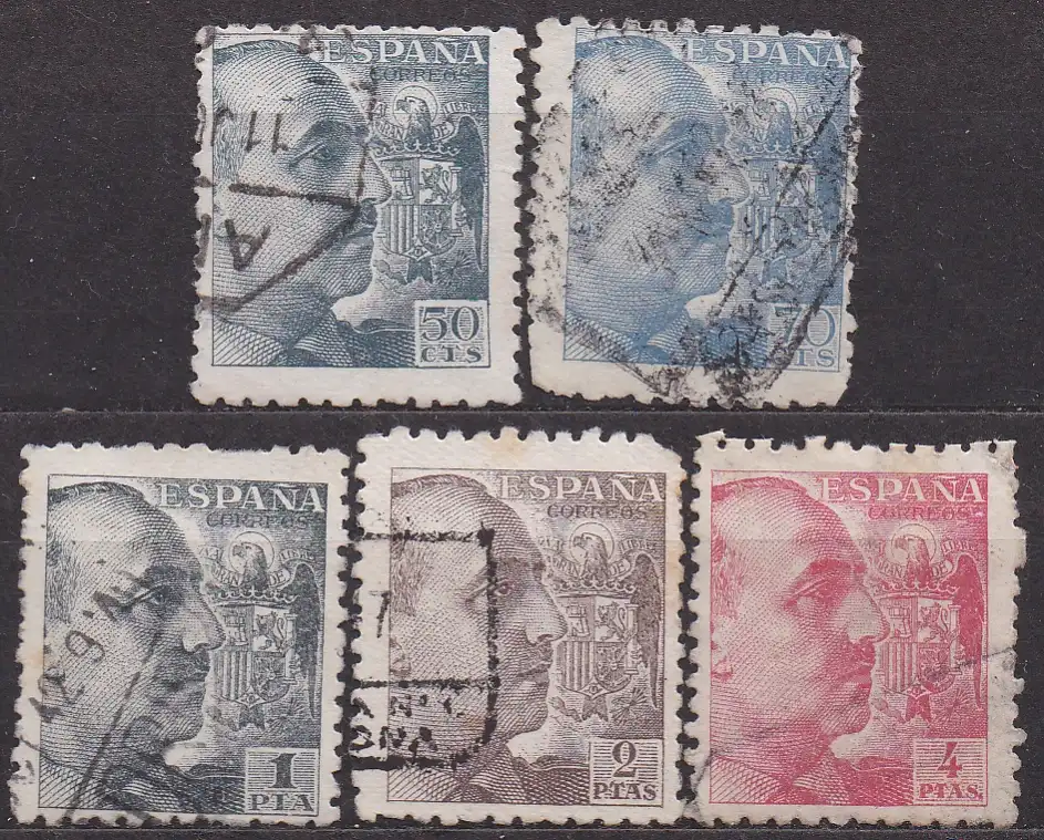 Spanien, Mi-Nr. 849 A, 851 A, 852 A, 854 A + 855 A gest., General Franco