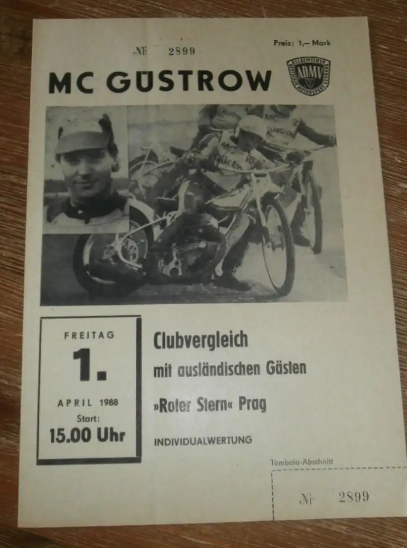 Speedway Güstrow 01.04.1988 , Prag , Programm , Rennprogramm !!!