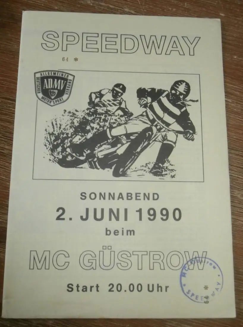 Speedway Güstrow 02.06.1990 , Pardubice , Prag , Gorzow , Programm , Rennprogramm !!!