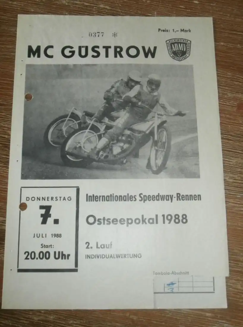 Speedway Güstrow 07.07.1988 , Ostseepokal , Programm , Rennprogramm !!! Weitere Programmhefte in meinen anderen Auktionen!
