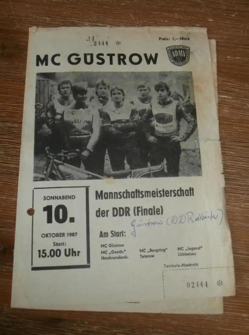 Speedway Güstrow 10.10.1987 , Finale DDR Meisterschaft Mannschaft , Programm , Rennprogramm !!! Weitere Programmhefte in meinen anderen Auktionen!