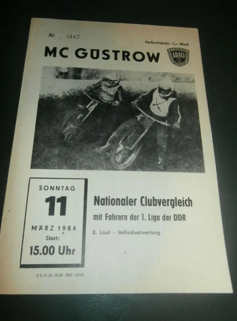 Speedway Güstrow 11.03.1984 , nationaler Clubvergleich , Programmheft , Programm , Rennprogramm !!!