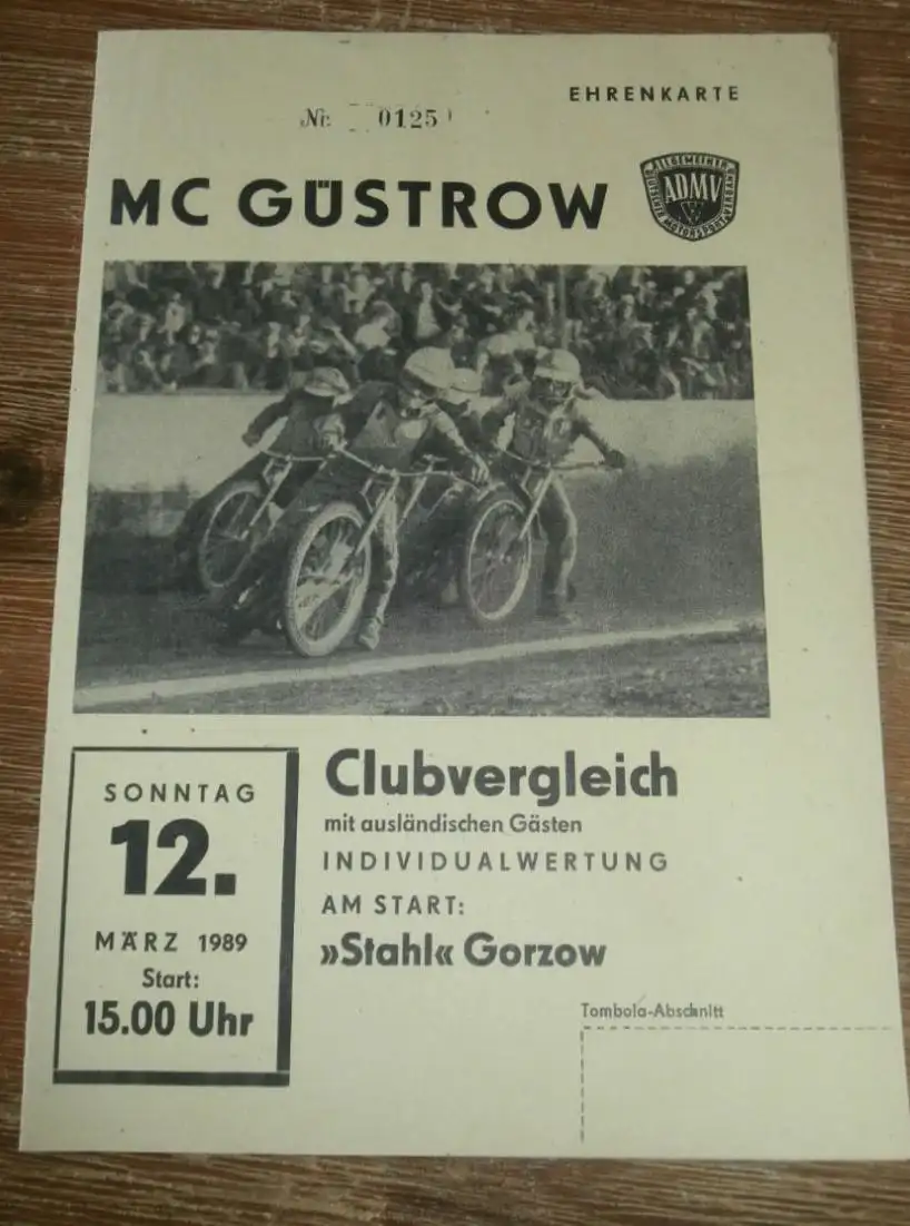 Speedway Güstrow 12.03.1989 , Gorzow , Programm , Rennprogramm !!!