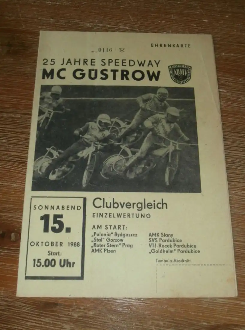 Speedway Güstrow 15.10.1988 , Stal Gorzow , Bydgoszcz , Prag , Plzen , Programmheft , Programm , Rennprogramm !!!