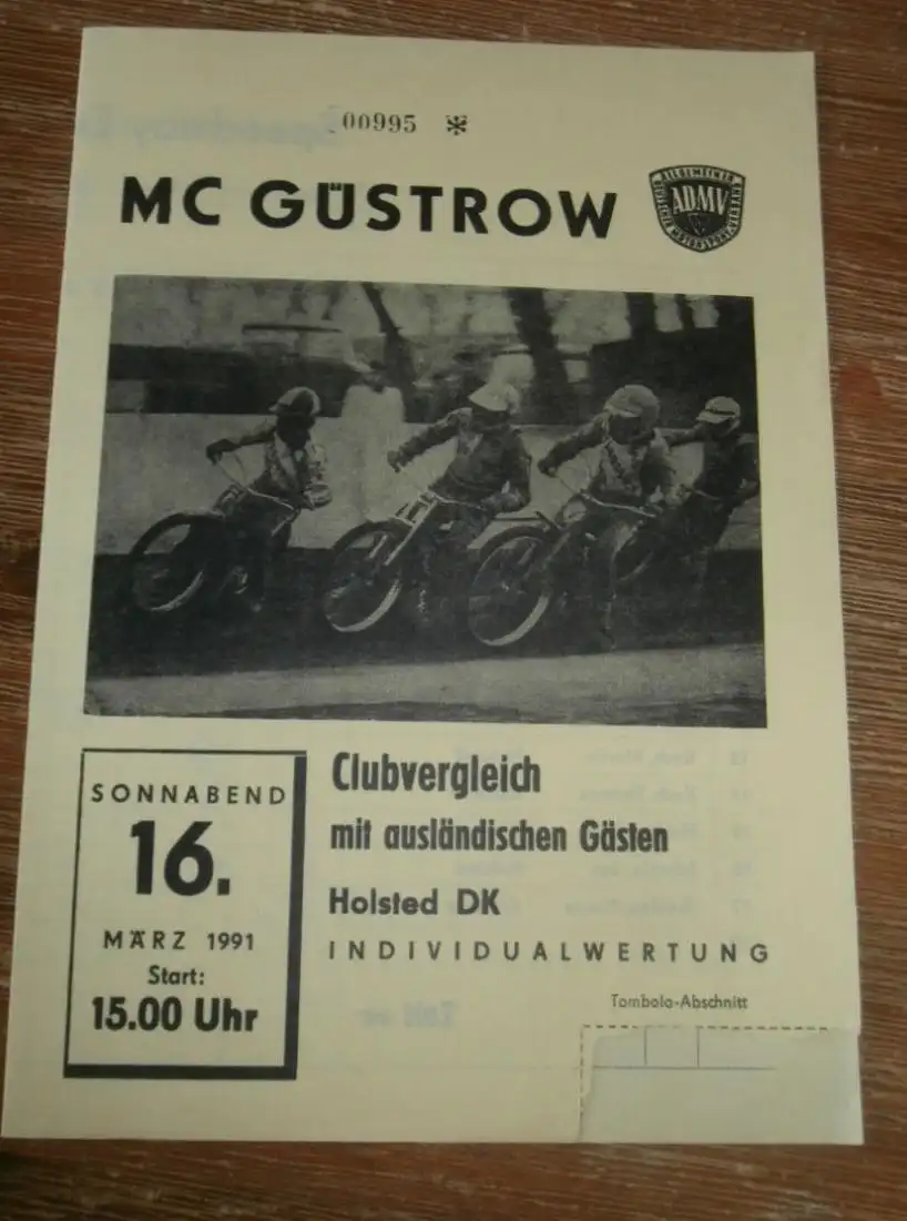 Speedway Güstrow 16.03.1991 , Holsted Dänemark , Programm , Rennprogramm !!!