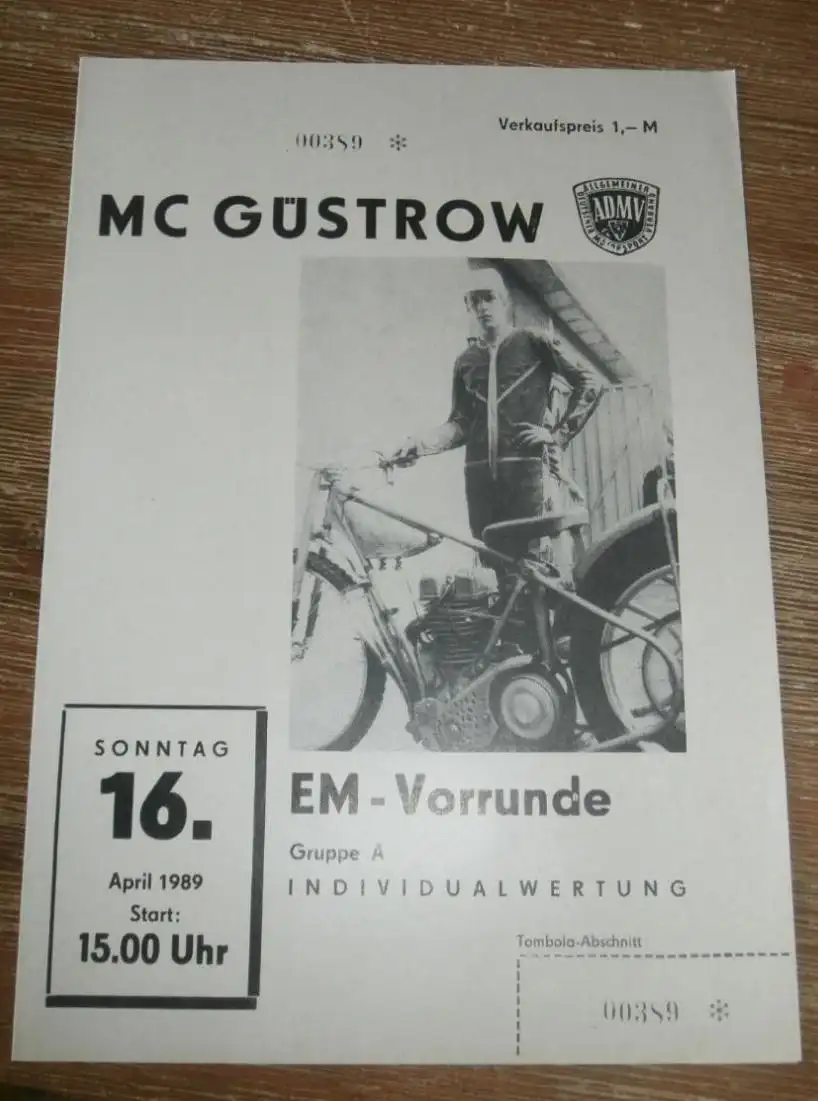 Speedway Güstrow 16.04.1989 , Europameisterschaft , EM , Programm , Rennprogramm !!!