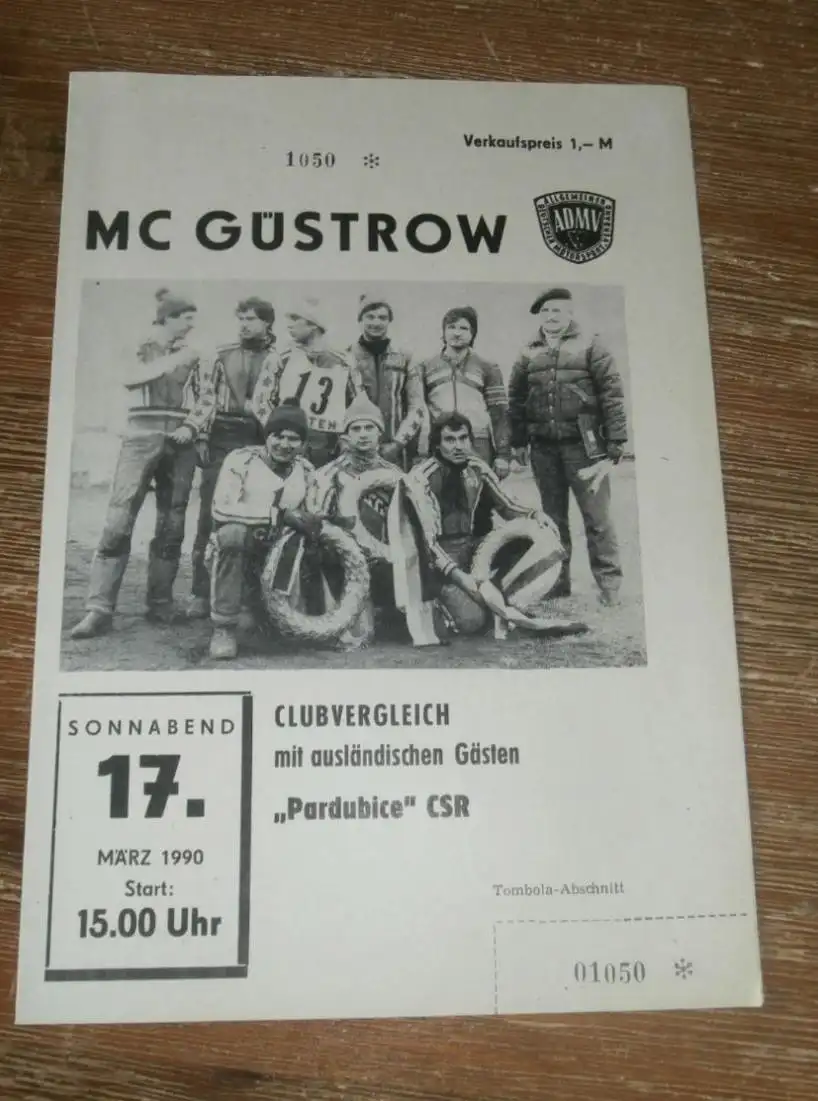Speedway Güstrow 17.03.1990 , Pardubice , Programmheft , Programm , Rennprogramm !!!