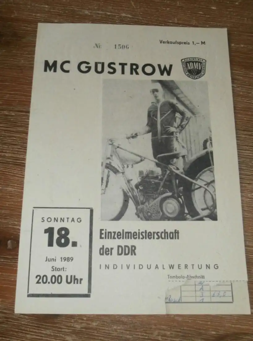 Speedway Güstrow 18.06.1989 , DDR Meisterschaft , Programmheft , Programm , Rennprogramm !!!