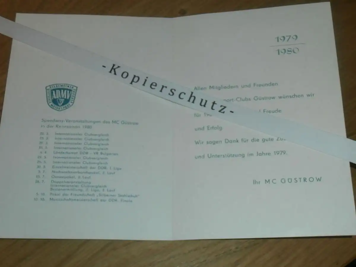 Speedway Güstrow , 1979/80 , DDR , Klappkarte mit Terminplaner , ADMV !!! Weitere Speedway-Fotos in meinen anderen Auktionen!