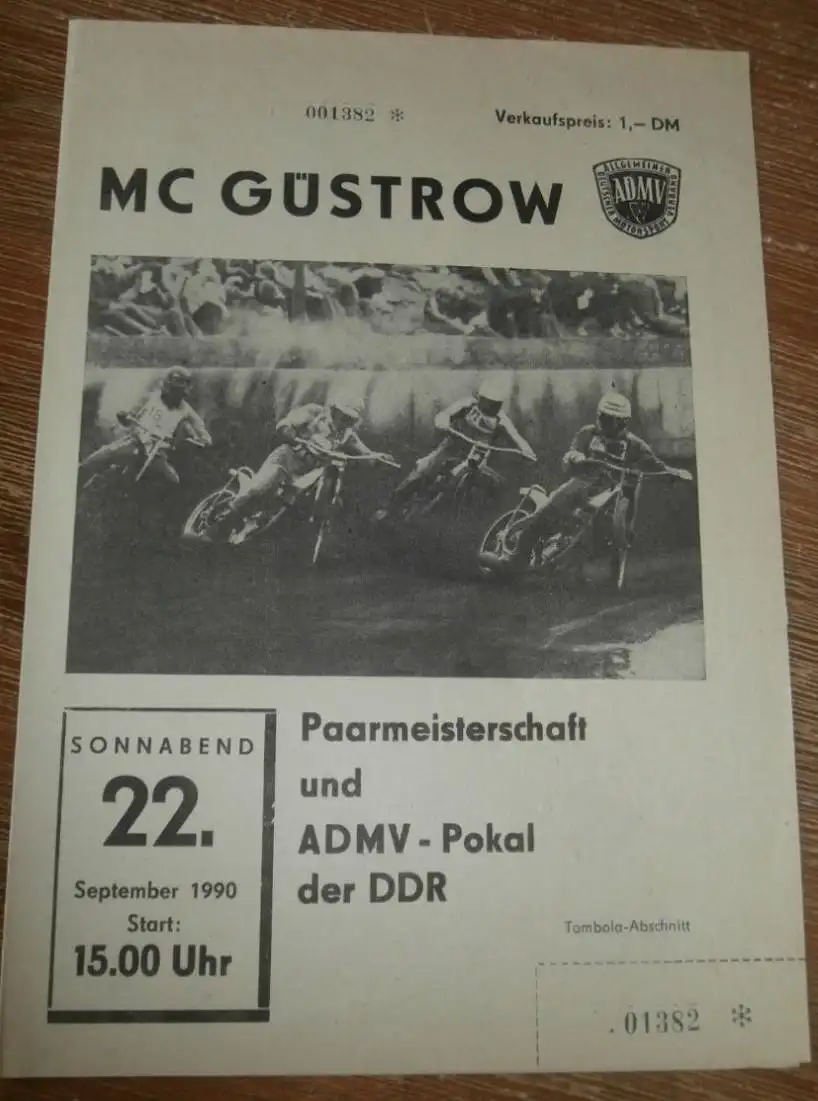 Speedway Güstrow 22.09.1990 , DDR Paarmeisterschaft , ADMV-Pokal , Programm , Rennprogramm !!! Weitere Programmhefte in meinen anderen Auktionen!